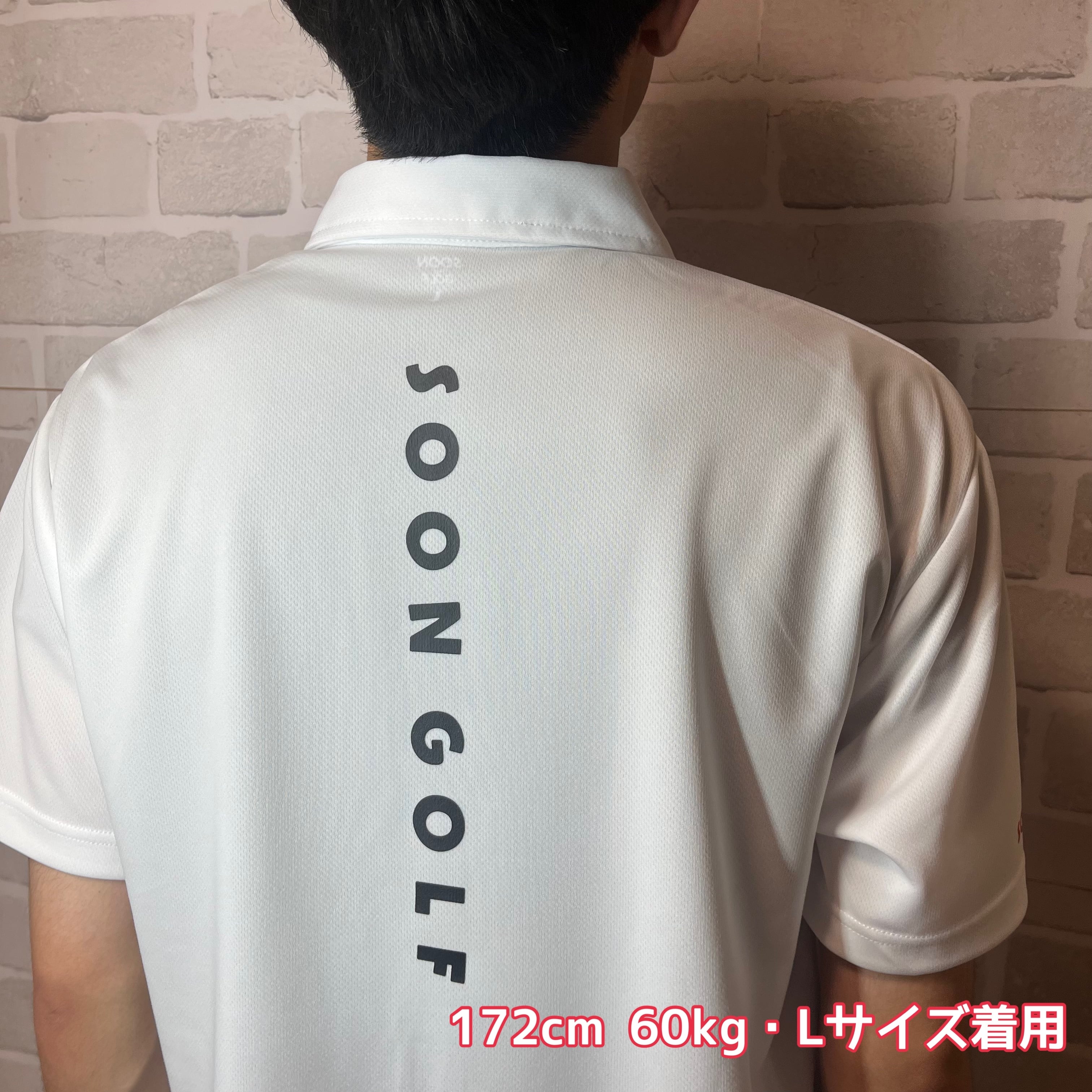 SOON GOLFロゴ入りボタンダウンポロシャツ〈ホワイト(黒字ver.)〉